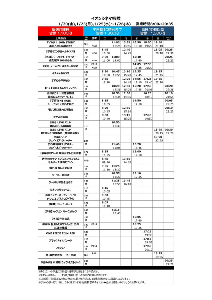 【1/20(金)~1/26(木)の上映スケジュール】🆕今週の新作🆕#アイカツ!10thSTORY未来へのSTARWAY#エンドロールのつづき【字】#パーフェクトドライバー成功確率100%の女【字】#ノ..