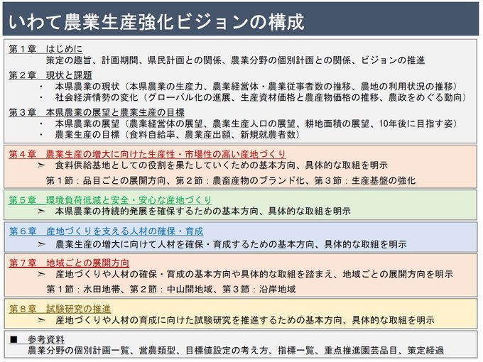 岩手県は、令和7年度からの4年間を計画期間とする、「いわて農業生産強化ビジョン」を策定しました。「いわて県民計画(2019~2028)」に掲げる政策を一層推進し、本県農業の強化に取り組んでいきます。ビ..