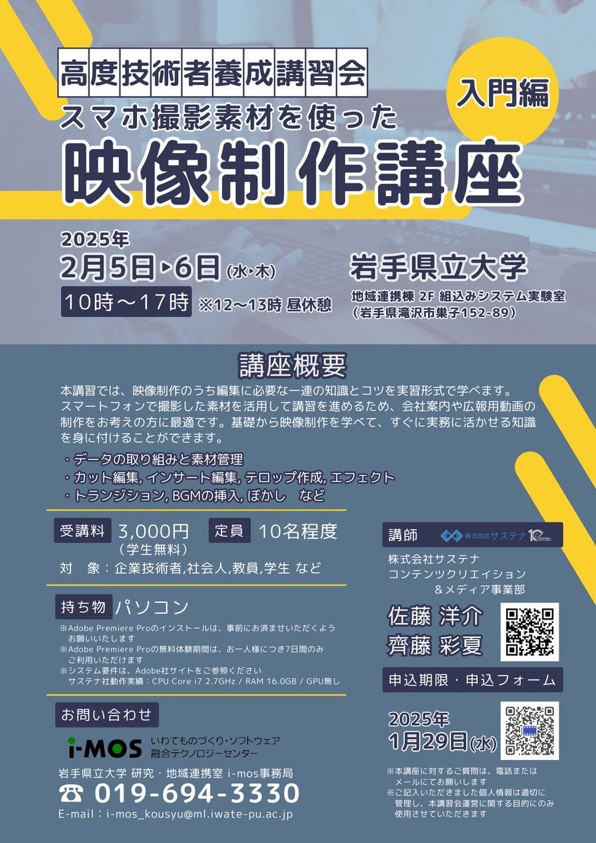高度技術者養成講習会「スマホ撮影素材を使用した映像制作入門」開催決定!→スマホから始める映像制作入門講座社内PR動画や商品紹介も自分で作れる!【2日間集中講座】初心者も大歓迎!基礎から学べる内容で新た..
