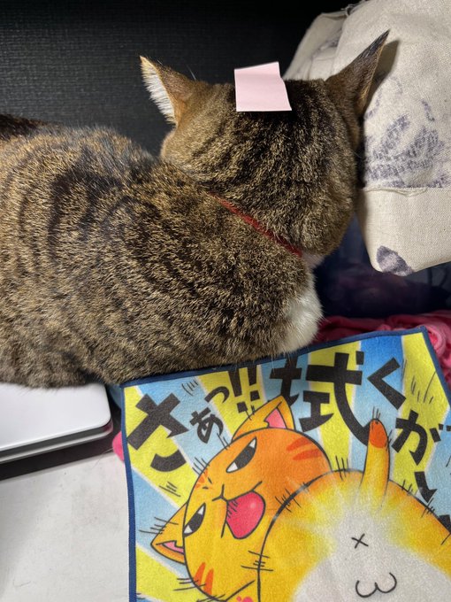 仕事の邪魔をするのでポストイット貼ってみました。10分以上たっても気づかずに寝てますwww#猫#猫との暮らし#猫のいる生活