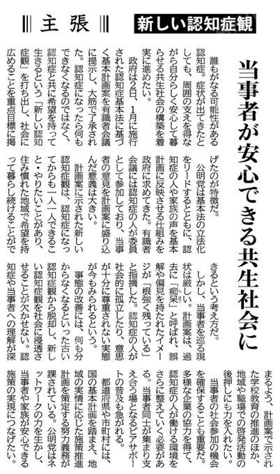(主張)新しい認知症観/当事者が安心できる共生社会に #公明新聞電子版 2024年09月06日付 https://komei.or.jp/newspaper-app/ #公明党がいる安心