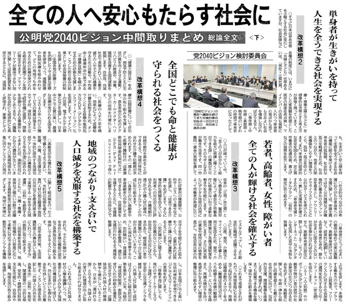 (公明党2040ビジョン中間取りまとめ(総論全文)=下)全ての人へ安心もたらす社会に/党2040ビジョン検討委員会#公明新聞電子版2024年09月25日付https://komei.or.jp/new..