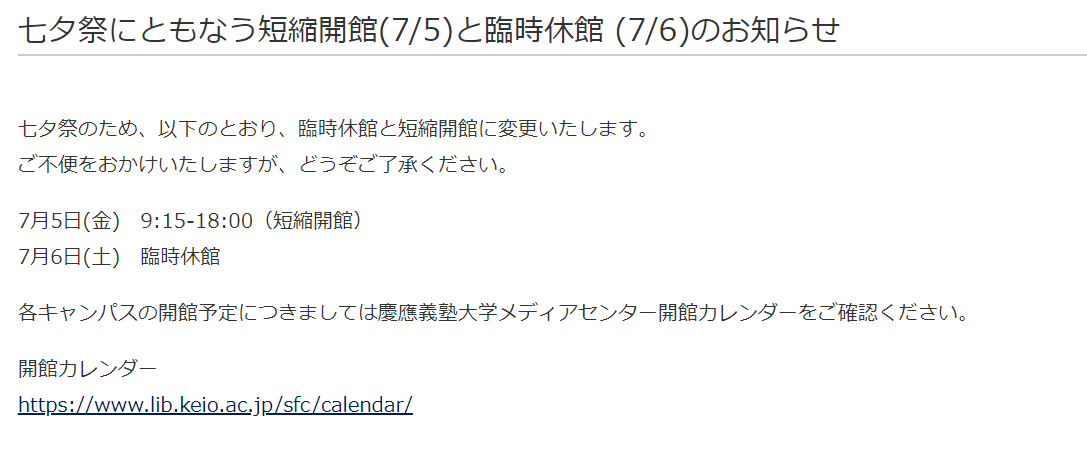 今週の七夕祭前日7/5は18時までの短縮開館、七夕祭実施の7/7は臨時休館です。ご注意ください。(TT)