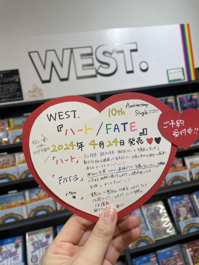 🌈#WESTꓸ🌈/ニューシングル『ハート/FATE』ご予約受付中✨\🎁先着購入特典🎁クリアファイル(メンバー集合絵柄)詳細は☟tower.jp/article/feature_ite..本日21:30..