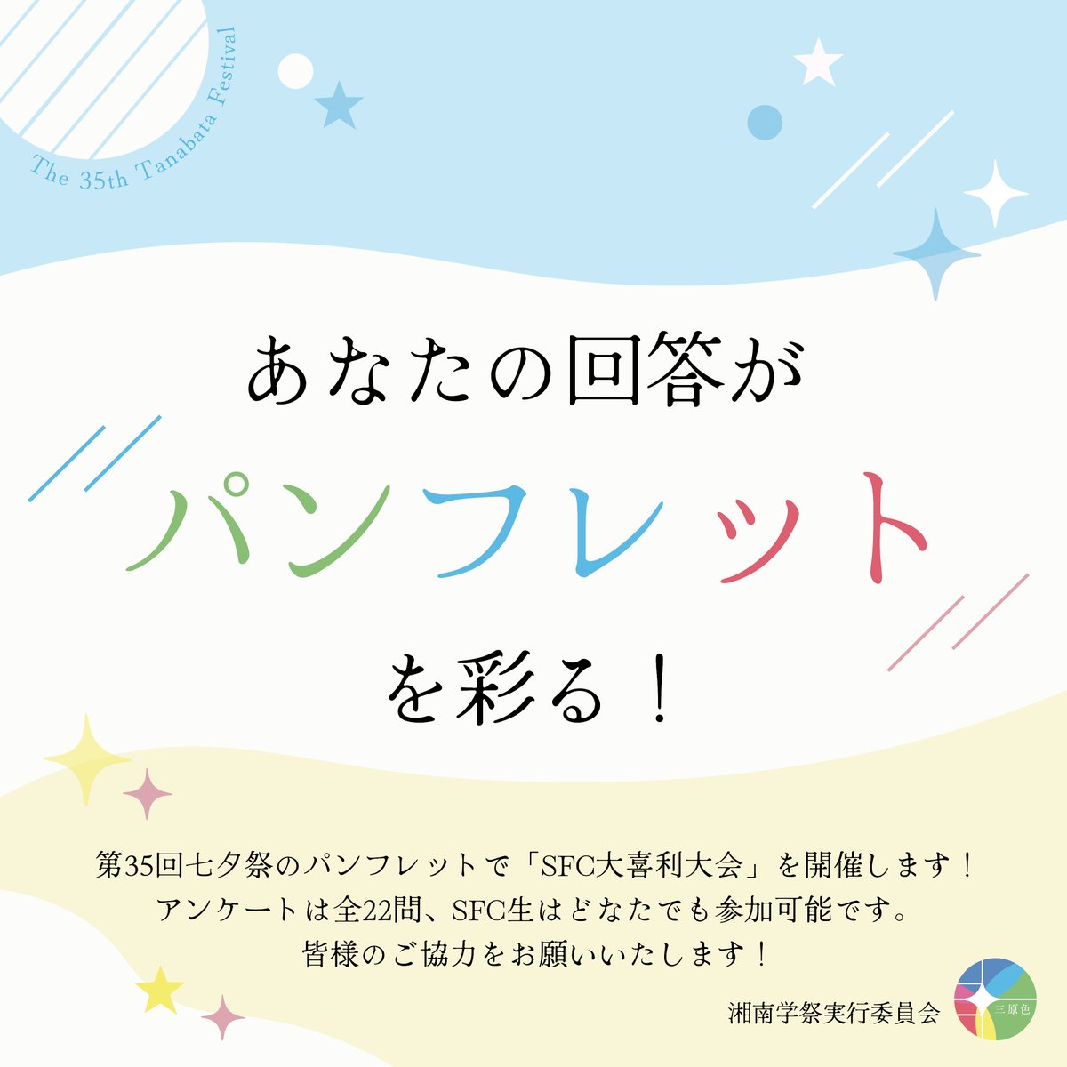 [第35回七夕祭SFC大喜利大会のお知らせ]第35回七夕祭パンフレットにて「SFC大喜利大会」を開催します✨SFCにまつわるあれこれをSFC生のみなさんからアンケート方式(全22問)で回答してもらい、..