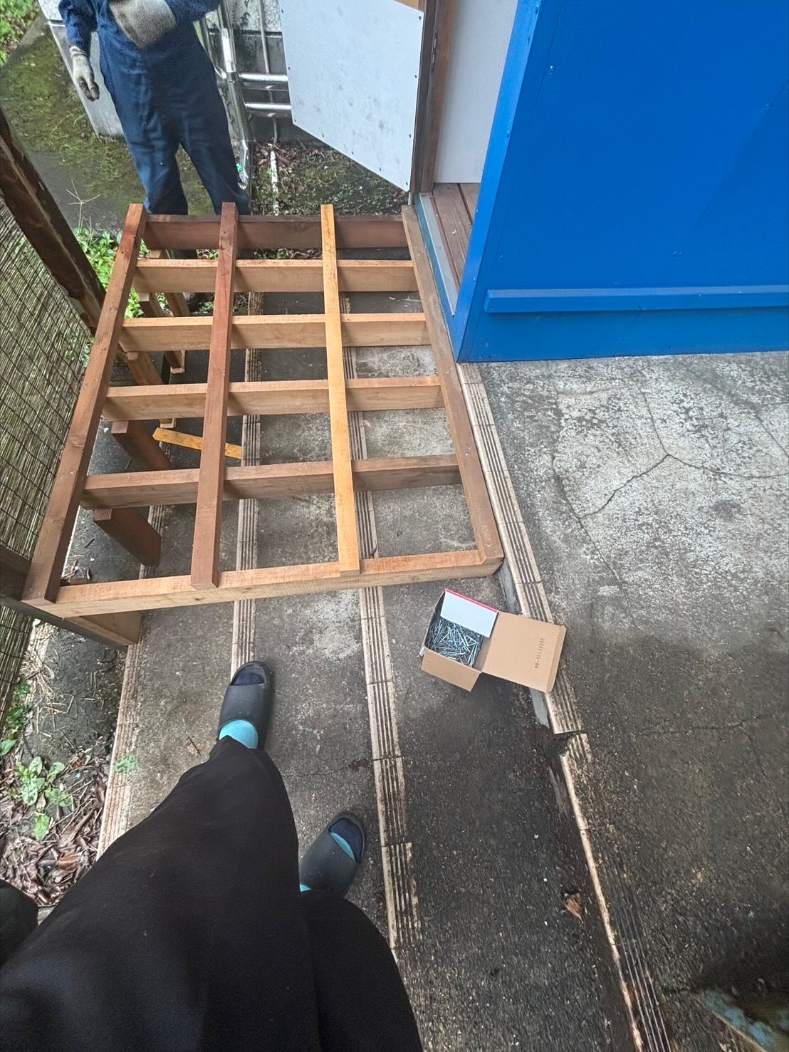どの作業もみんなでイジイジしています。材料費はなるべくお金をかけないでやってます。次は受付の小屋を..