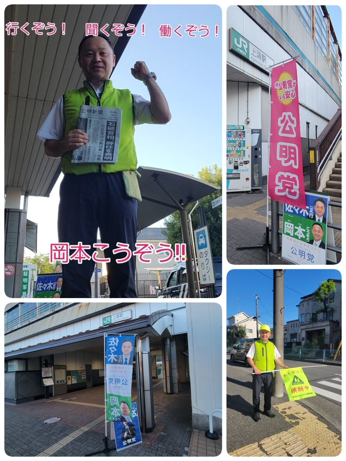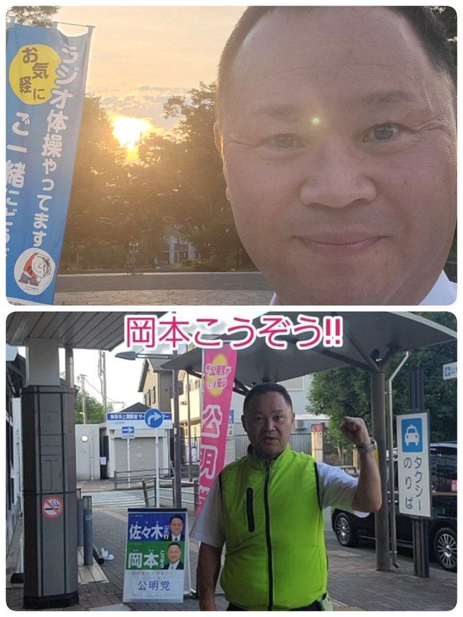 横山公園までウォーキングの後、上溝駅で朝のご挨拶&市政報告を!行くぞう!聞くぞう!働くぞう!岡本こうぞう!!#岡本こうぞう#公明党