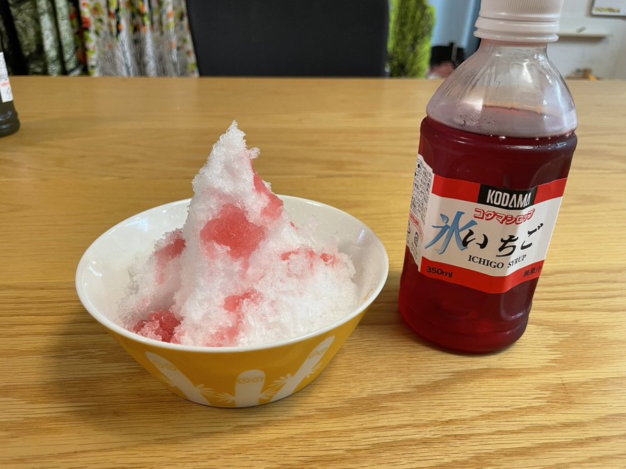 最近子供と遊べていないので、今夜は一緒にかき氷をつくりました。私はシロップ少なめ。その後不思議なルールの縄跳びみたいな遊びをして絵本を読み聞かせして寝ました。全力の2時間