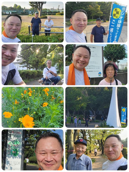 横山公園で朝のラジオ体操とジョギングを。その後、近くの公園の草刈りを少々。多くの方にお声がけいただき、心より感謝申し上げます。皆さま、いつも本当にありがとうございます!#岡本こうぞう#さがみはらの声行..