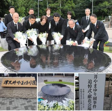 相模原市の知的障害者施設で19人が殺害された津久井やまゆり事件から8年となりました鎮魂のモニュメントで献花を行い、ご冥福をお祈り申し上げました差別のない共生社会の実現を目指して参ります