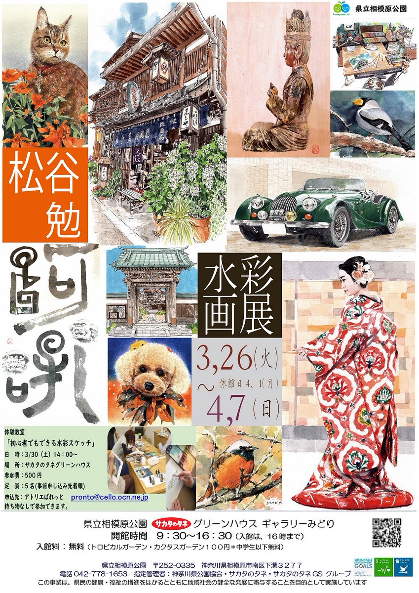 松谷 勉 水彩画展開催日:3月26日(火)~4月7日(日)休館日:4月1日(月)場所:サカタのタネグリーンハウス内2階ギャラリーみどり時間:9:30~16:30(入館は16:00まで)料金:無料出展者..
