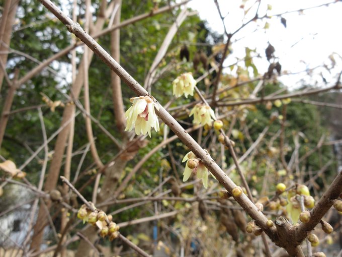 旧北島家の横に植えてあるロウバイが少しずつ咲き始めました!郷土民家園では毎年1月頃に咲き、近づくとほんのり良い香りがします。花の中心部分が赤い原種のロウバイと、花全体が黄色いソシンロウバイが並んでいる..