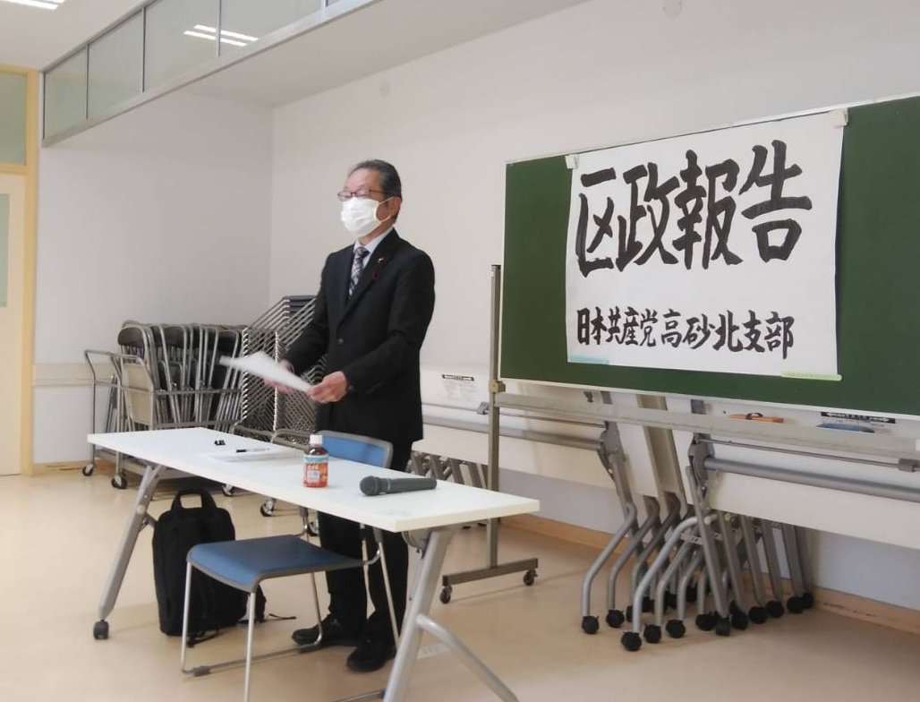 共産党高砂北支部主催の区政報告会に18人が参加。条例提案や請願に自民公明が反対する理由は何か、公明党のポスターに給食無償化は四半世紀要求してきたとあるが本当か、など意見や質問がだされました。統一地方選挙で日本共産党を伸ばして学校給食と子どもの医療費の無償化を国の制度にしましょう❗