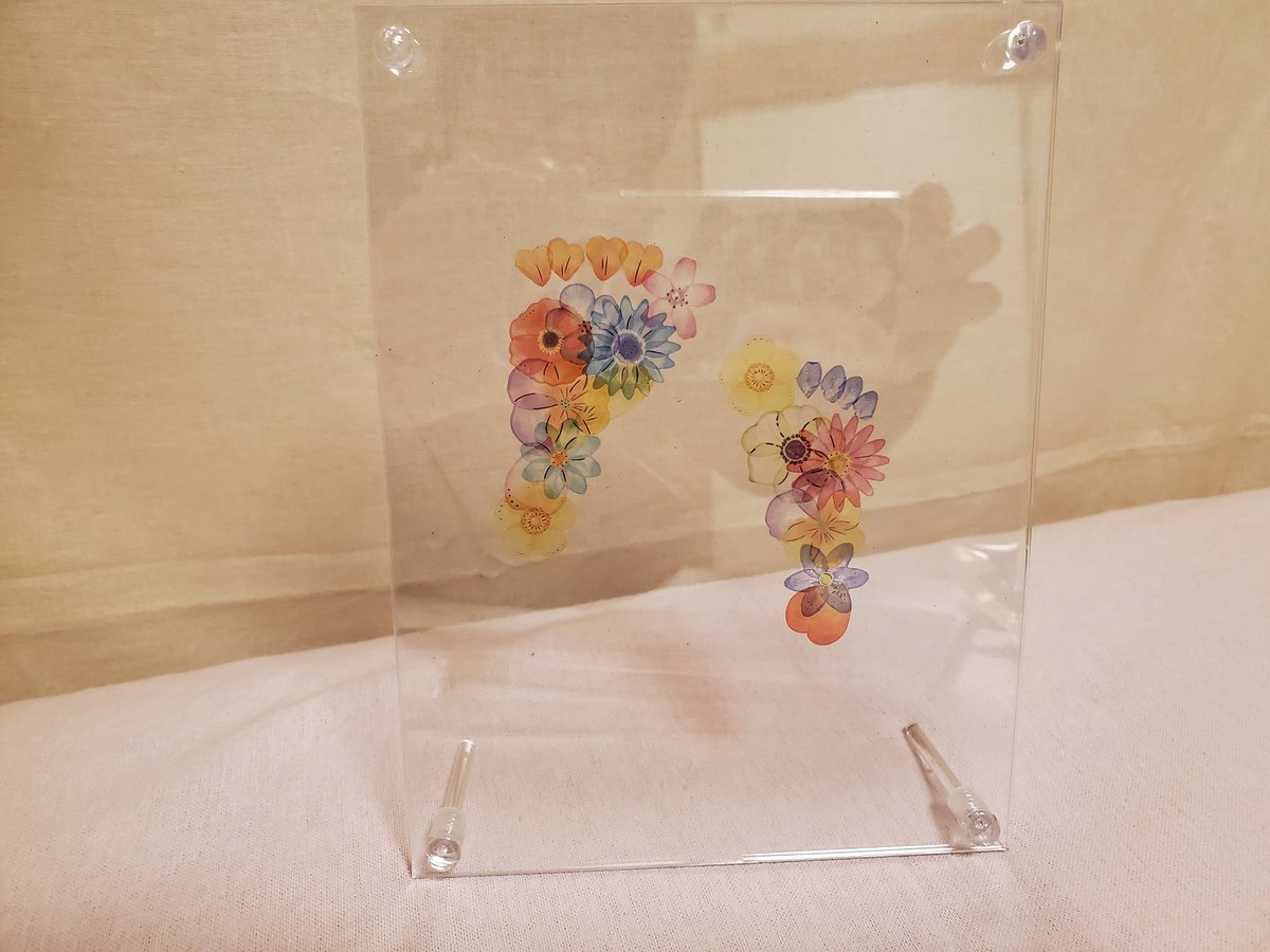 レクリエーション用に、作ってみた❗ これ向かって左は実際の足形から作ったもの 右は足形なかったからフリーで作りました→右足偽装です 図工が2だけのことはあって、センスないね~ #足形 #足形花シール #センスなし