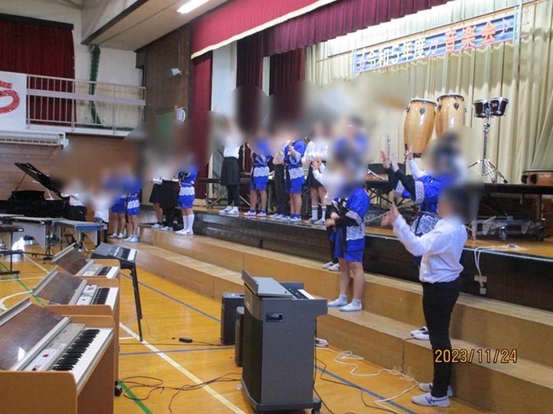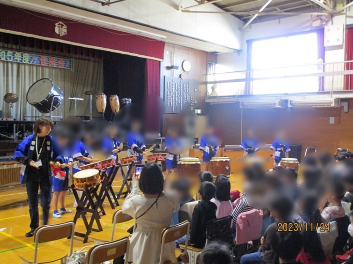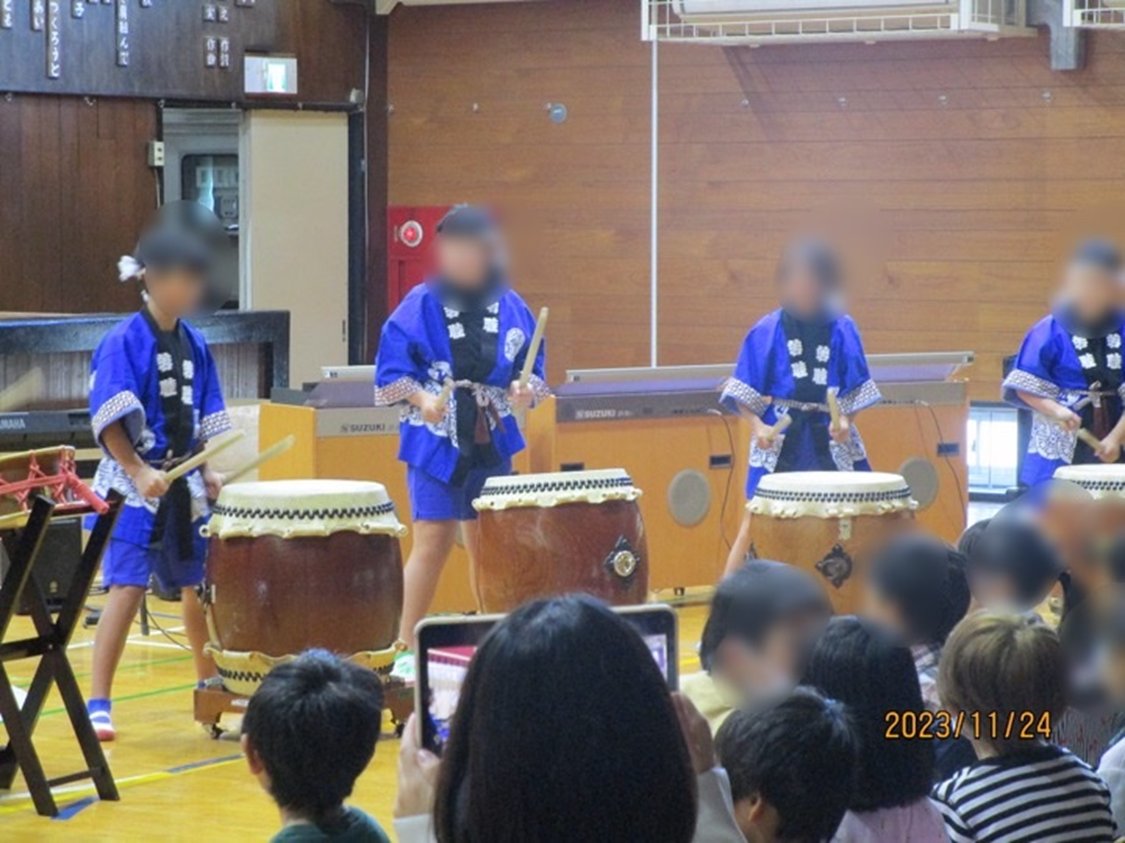 小学部5・6年生が交流校の西亀有小学校音楽会に参加しました。葛飾祭でも披露した和太鼓の演奏と、西亀有小手話クラブの皆さんと合同での手話コーラスを発表しました。たくさんの友達の前でドキドキしながらも一生懸命演奏することができました。