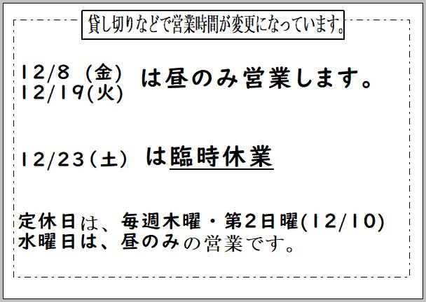 12月の営業時間の変更のお知らせです。