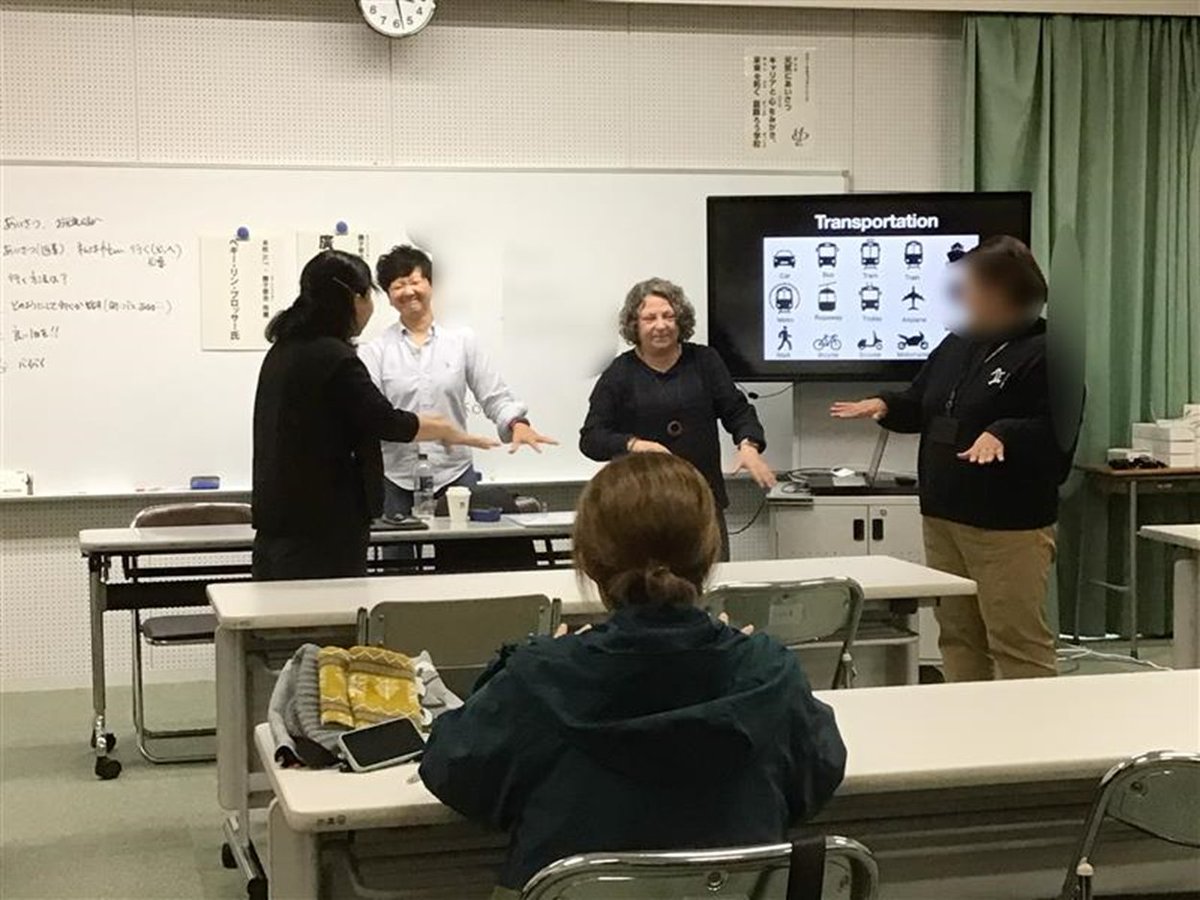 場所や交通機関を表す手話を練習して、「どこへ行くの?」「どうやって行くの?」と会話しました。