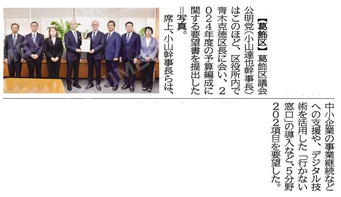 来年度予算で要望/葛飾区 #公明新聞電子版 2023年12月24日付 www.komei.or.jp/newspaper-app/