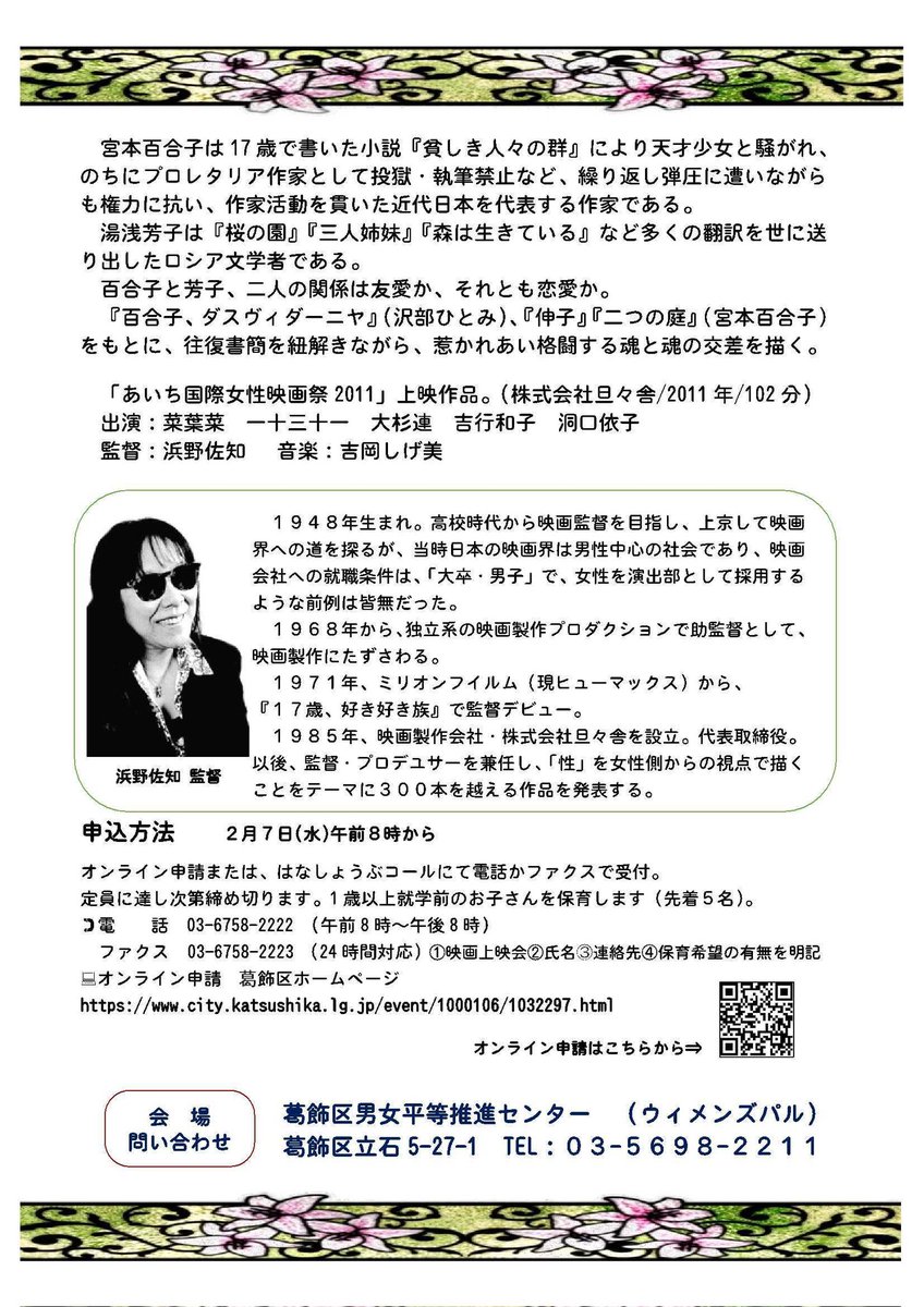 明治・大正期に自分の言葉を持ちえた女性たち、作家宮本百合子とロシア文学者湯浅芳子の交流を描く。