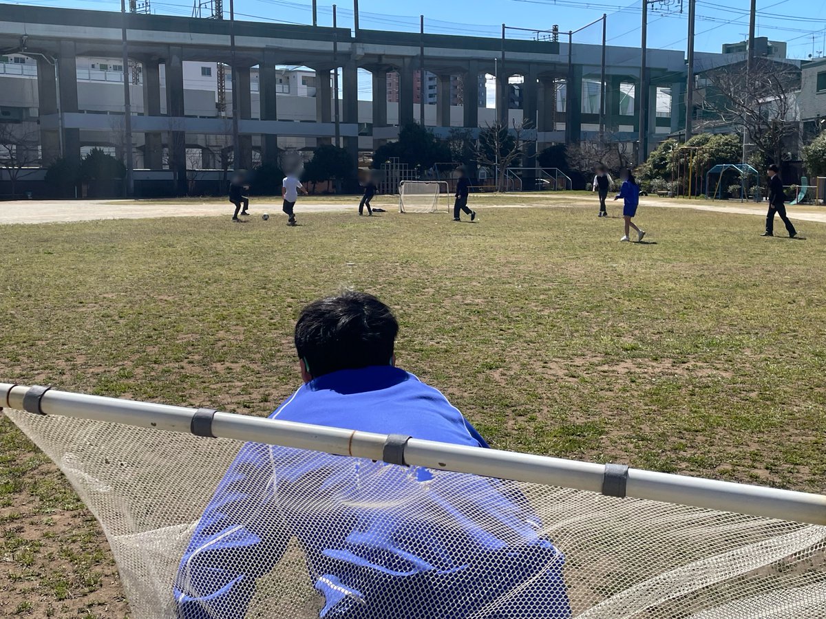 明日卒業式を迎える中学部3年生と後輩が昼休みにサッカーをしています。