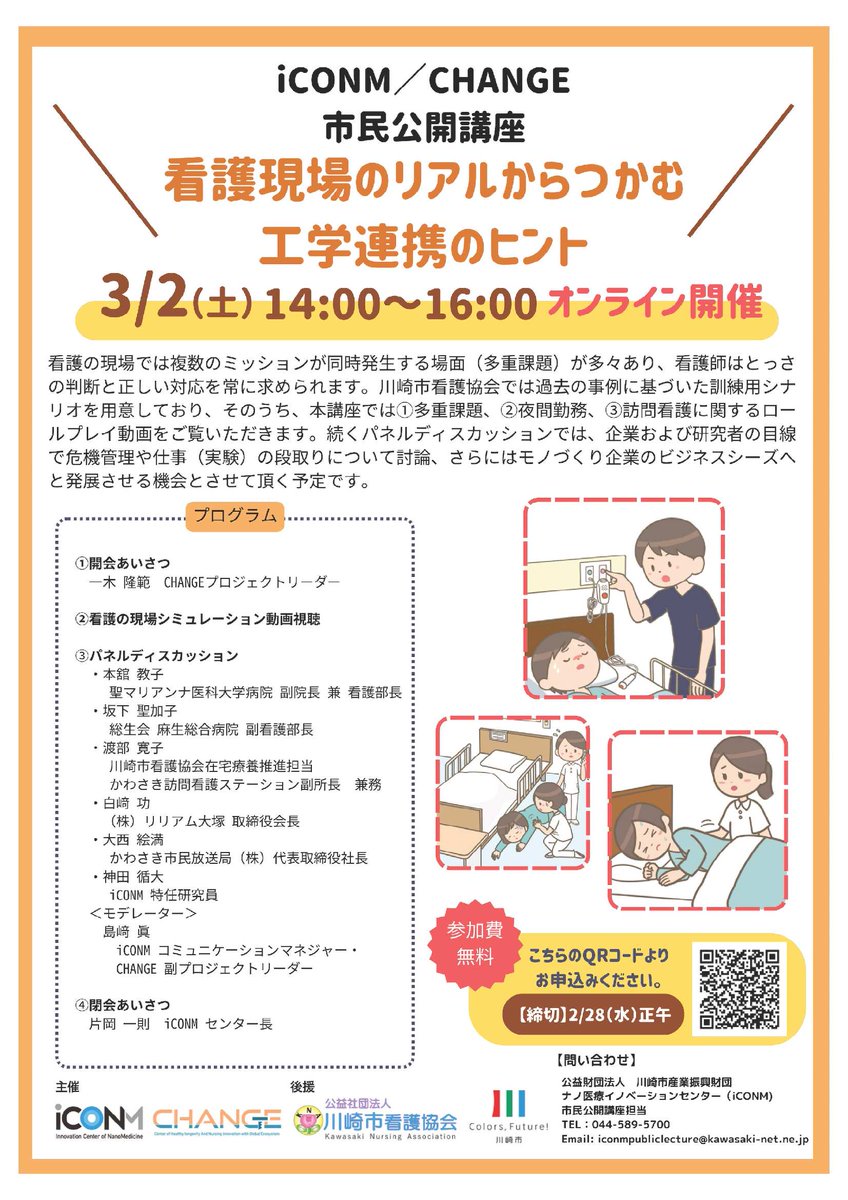 同時に複数のミッションをこなす看護現場。そんなリアルの再現動画から、異業種の視点で工学連携のヒントを探るオンライン公開講座が3/2(土)に開催されます!
