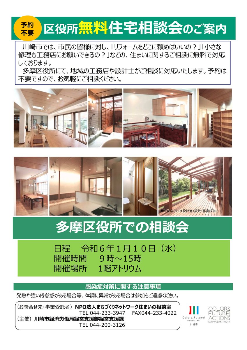 【無料住宅相談会開催】「#リフォームをどこに頼めばいいの?」「小さな修理も工務店にお願いできるの?」などの、#住まいに関するご相談に、相談員が#無料で対応いたします!1月10日(水)9時~15時@多摩..