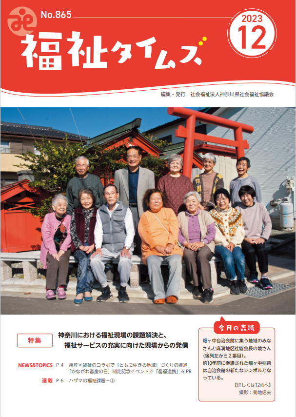 【12月25日更新】機関紙「福祉タイムズ12月号」を掲載しました。 12月号では、社会福祉制度・施策に関する提言、畜福連携の取り組み、神奈川県社会福祉大会についてなどを掲載しています。 データ版はこちら→