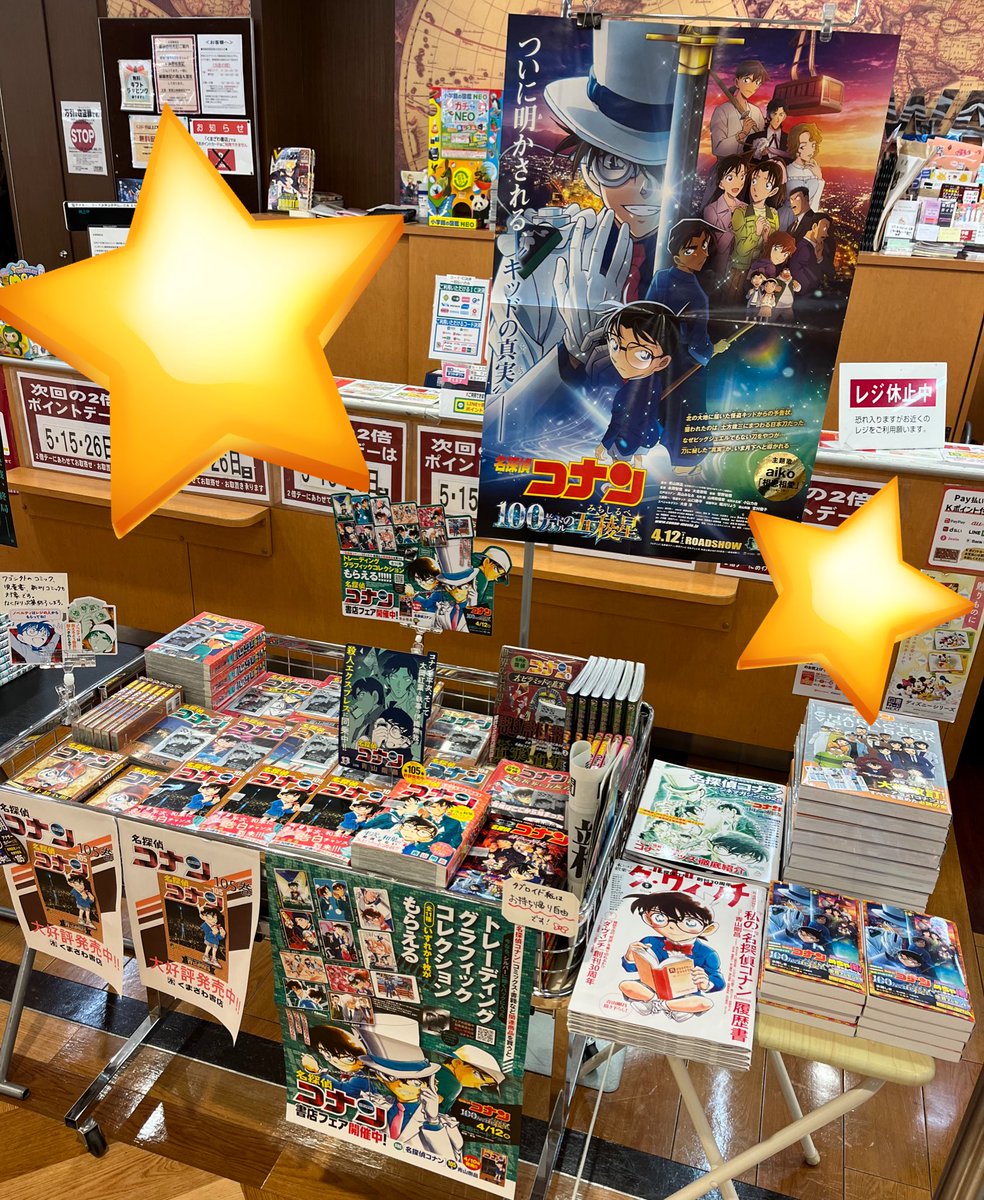 【コミックフェア】いよいよ明日公開の「名探偵コナン 100万ドルの五稜星」に合わせて書店フェアを開催中です!昨日発売の最新刊を含む関連コミック、ジュニア新書や学習シリーズなどの児童書から出ているコナン..