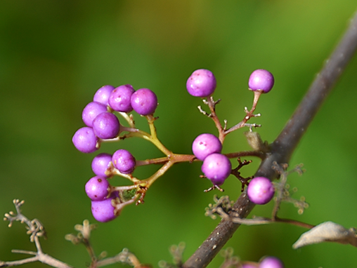 正解は、写真②です。ムラサキシキブは実が美しい紫色をしていることから、紫式部にちなんで名づけられたといい、花や実は葉の上につきます。よく似た写真①のヤブムラサキは花や実は葉の下につき、葉に細かい毛があ..