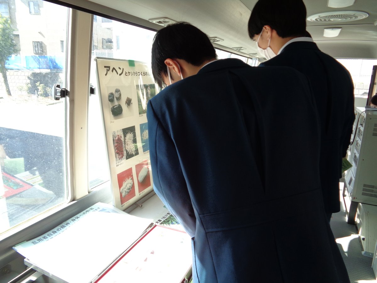 横浜市立鴨居中学校にて薬物乱用防止教室を実施しました!2月21日、薬物乱用防止広報車を見学した生徒から、『大麻草が、身近にある植物のような見た目で驚いた。薬物使用者の写真は、注射痕が痛々しくて怖かった..