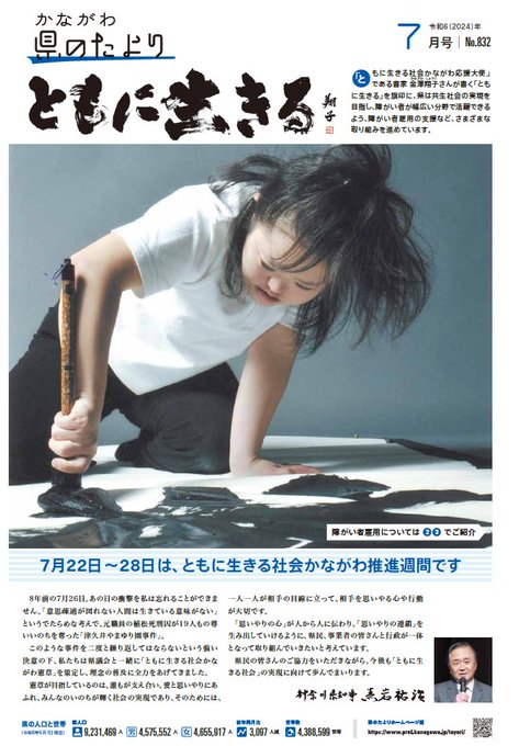 【県のたより7月号】1面は、「ともに生きる」です。ホームページ版(https://pref.kanagawa.jp/tayori/2407/001.html…)では、PDF版も掲載しています。なお、新..