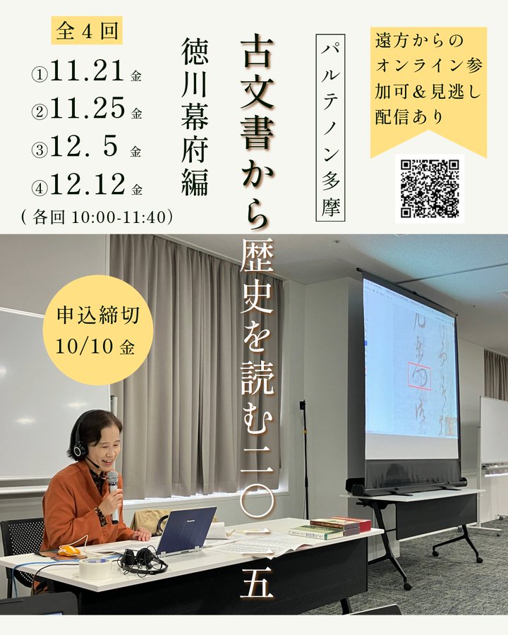 【募集開始!】「古文書から歴史を読む2025【徳川幕府編】」大人気の福留真紀先生の講座・全4回です!オンライン参加・見逃し動画配信ありぜひ、ご興味のある方はお気軽にご参加ください!https://pa..