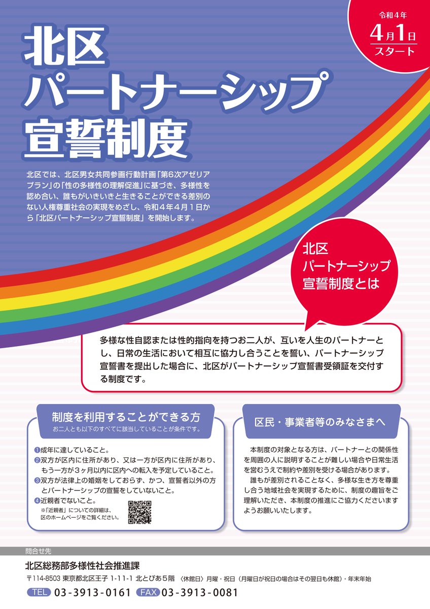 「#北区パートナーシップ宣誓制度」が開始されます!