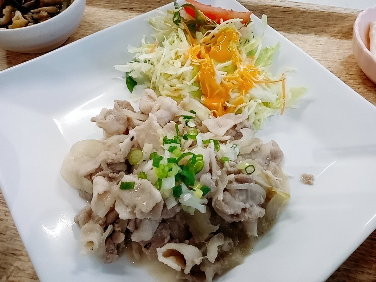 おはようございます😊本日の日替わりランチとミニデザートはねぎ塩豚カルビ炒めとイチゴジャムのシフォンケーキです🍓脂ののった豚カルビ肉をコクのある特製塩ダレで炒めました☘️シフォンケーキには生クリームとジャムがつくという大サービスです🎵笑