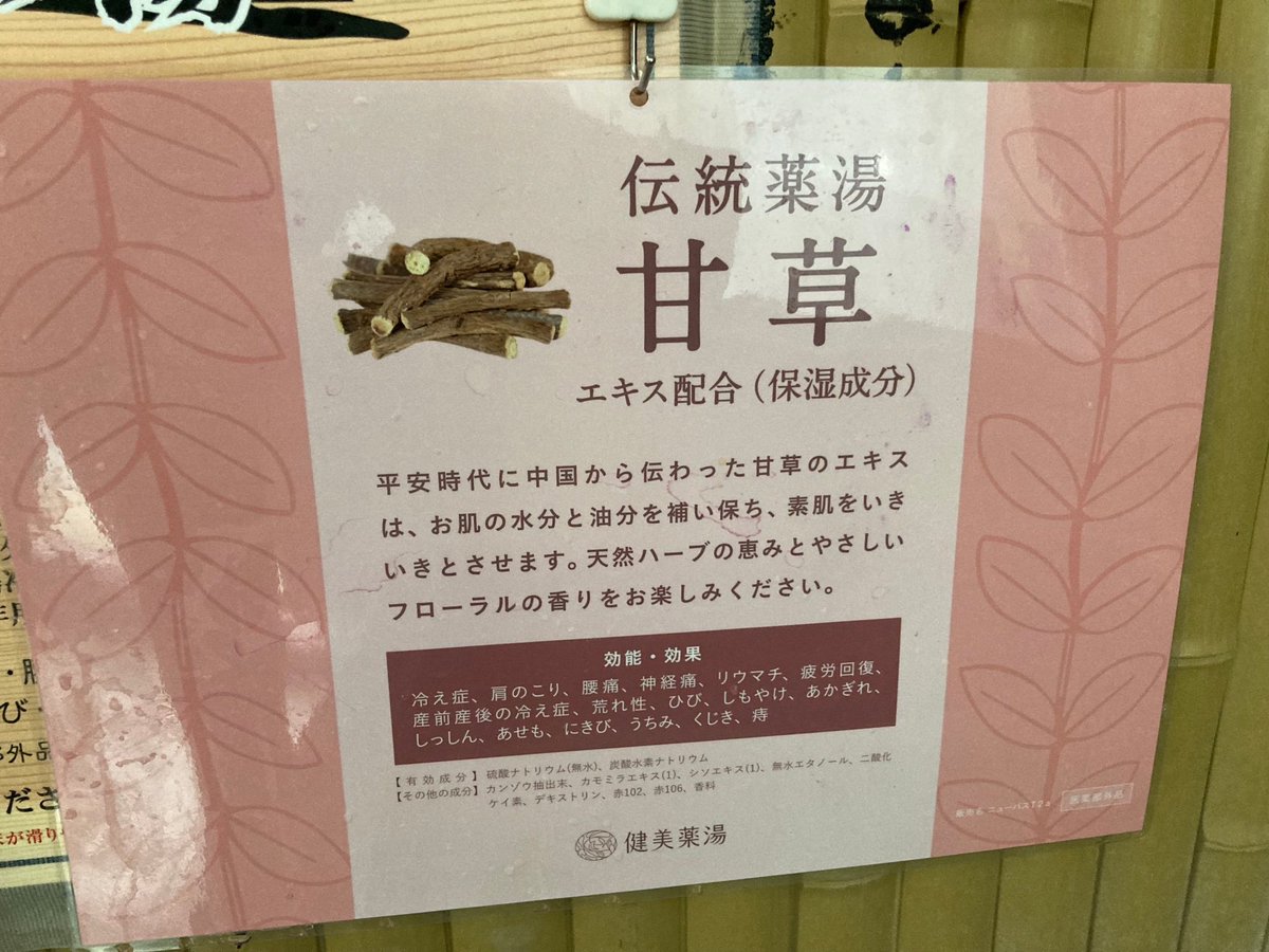 本日の薬湯は甘草です。フローラルの優しい香りで癒されます♨️