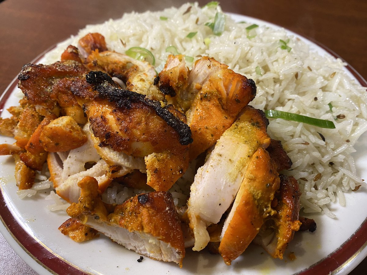 赤羽グレイトカルカッタでチキンティッカライス。クミンとギー香るふわふわライスに一枚肉分はあるチキンティッカが乗ってる料理。久しぶりに食べたらやっぱり美味い。何らかの米飯料理が食べたいなと思ったときにはこの店使いやすいんだ。ひとり客も多いし空いてるし。