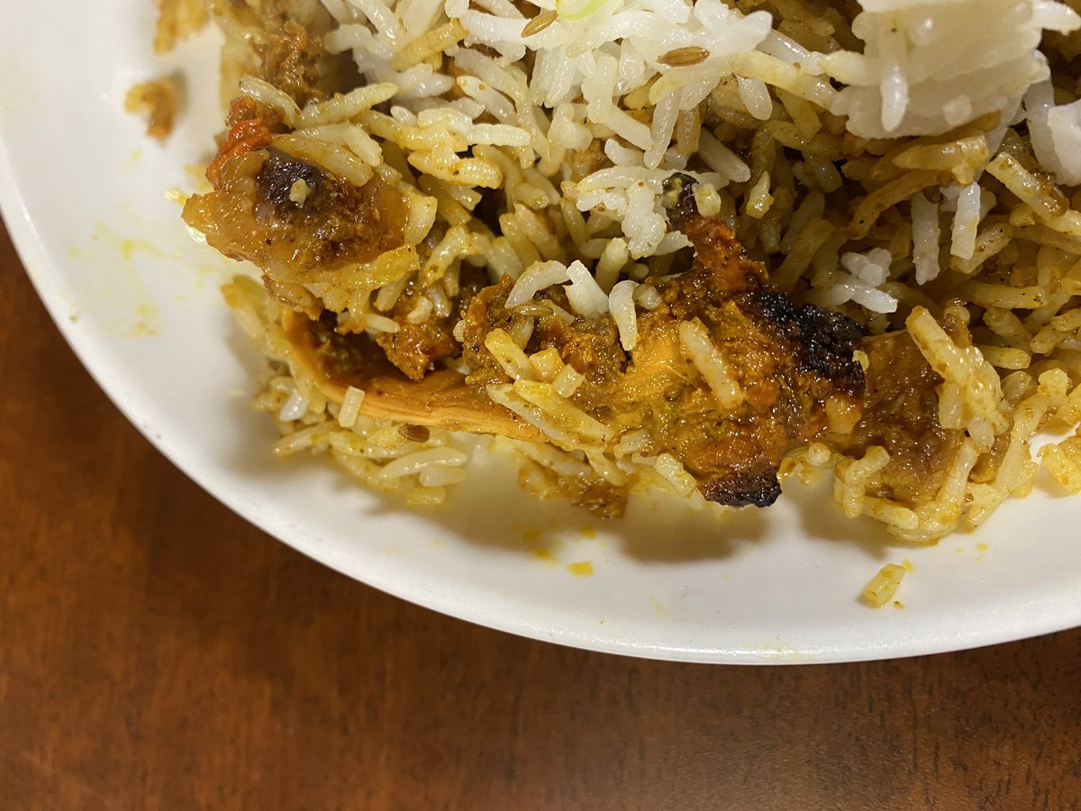赤羽グレイトカルカッタでビリヤニ大盛り。今日も忍んでましたチキンティッカ。ホールカルダモン、ホールブラックペッパー、シナモン片、3粒のアルブハラが良い感じに飽きさせない散らばり感。うまいんだよなあ。今日はお水のグラスの底にインドが見えました。