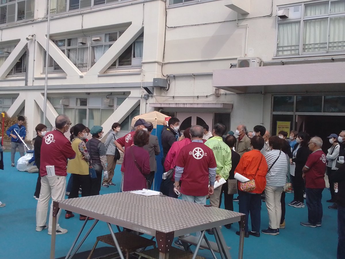 その後、王子第二小学校で行われていた十条台地区連合町会の、災害時の避難所開設訓練に参加しました。