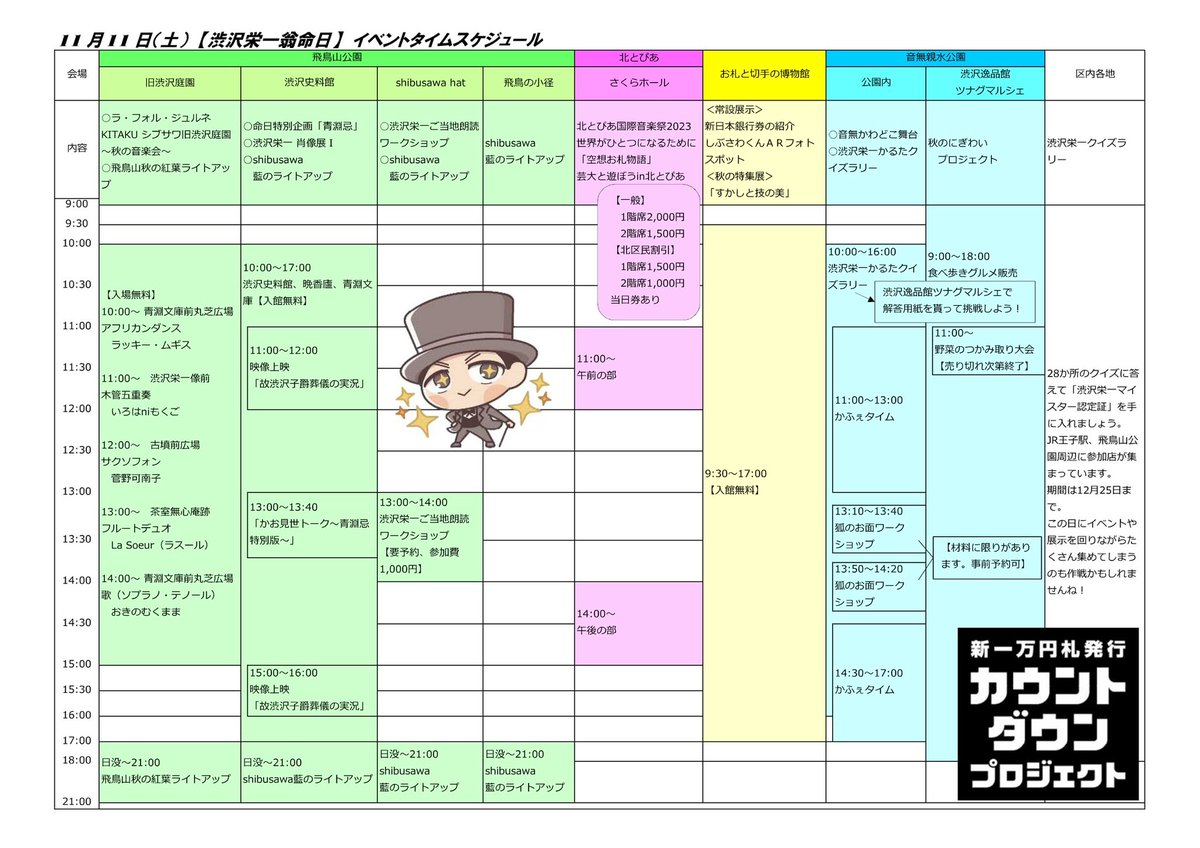 今週末(11/11&11/12)、飛鳥山公園周辺での渋沢栄一さん関連のイベントがたくさんあるので時系列で整理しました!