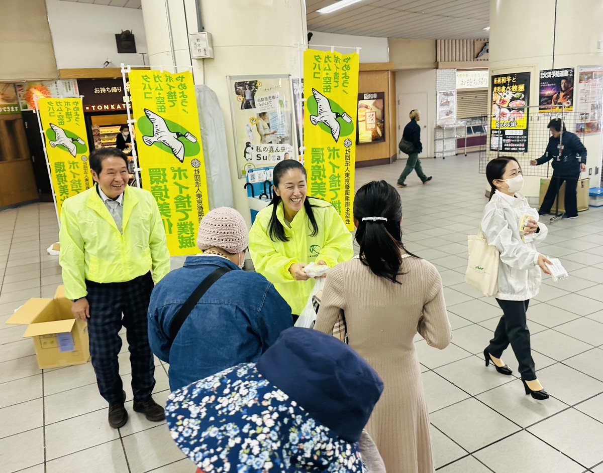 #北区環境衛生協会 "ポイ捨て撲滅キャンペーン"😄 協会‥理容所、美容所、クリーニング所、ホテル旅館の皆さま、赤羽駅長とJR職員の方々、区の環境課長や職員と共に啓発活動に参加❣️ 地道なお取り組みに感謝です🙇♀️ 北区も環境美化に向けた取り組み、更に進めて参ります💫