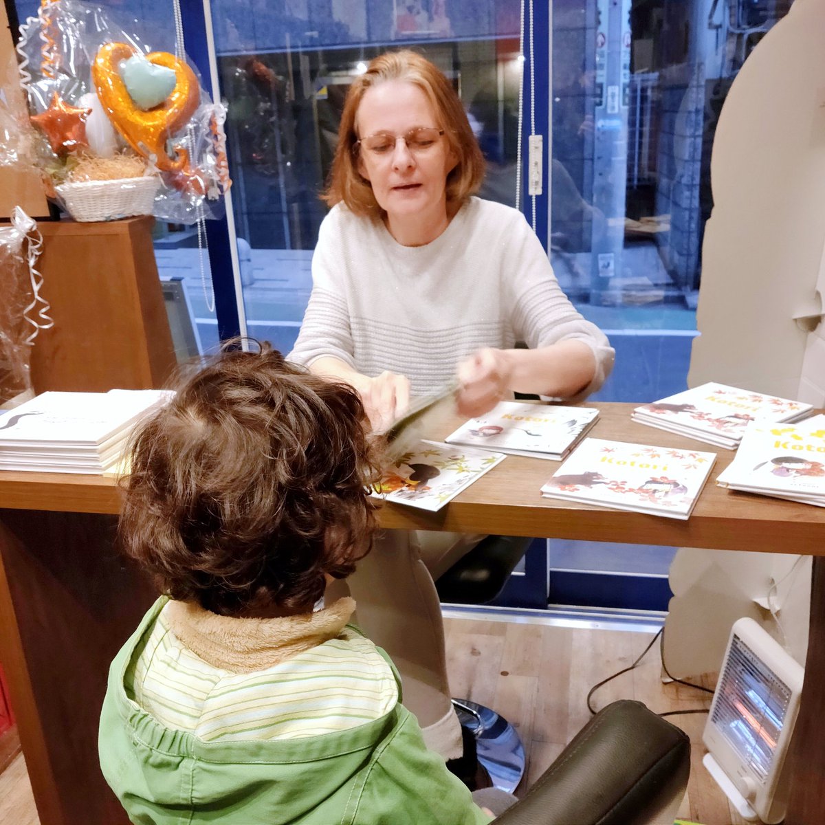 近くの東京国際フランス学園での児童向け読み聞かせ会を終えたあと、フランス語の絵本「#kotori 」シリーズの原作者Alice Monard(アリス・モナール)さんがサイン会をおこなってくれました❤️