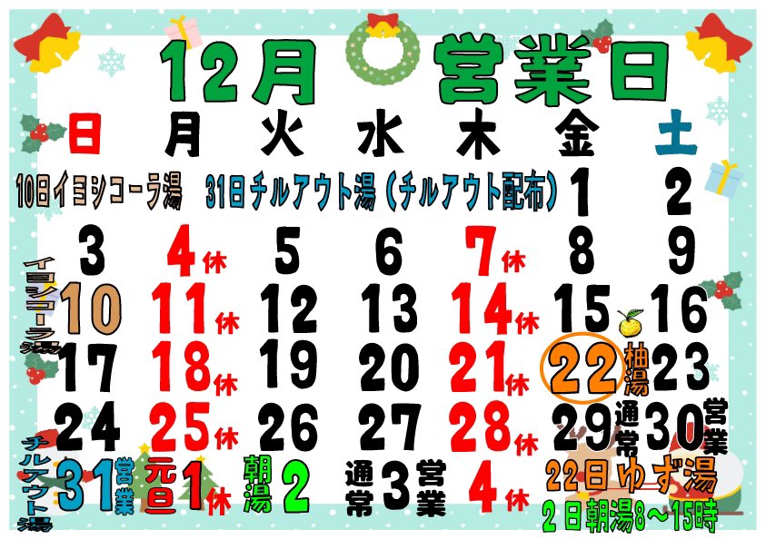 大晦日31日(日)「チルアウト湯」チルアウト缶🥫150本進呈!