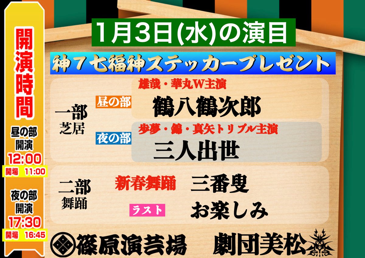 芝居 歩夢・錦・真矢トリプル主演『三人出世』