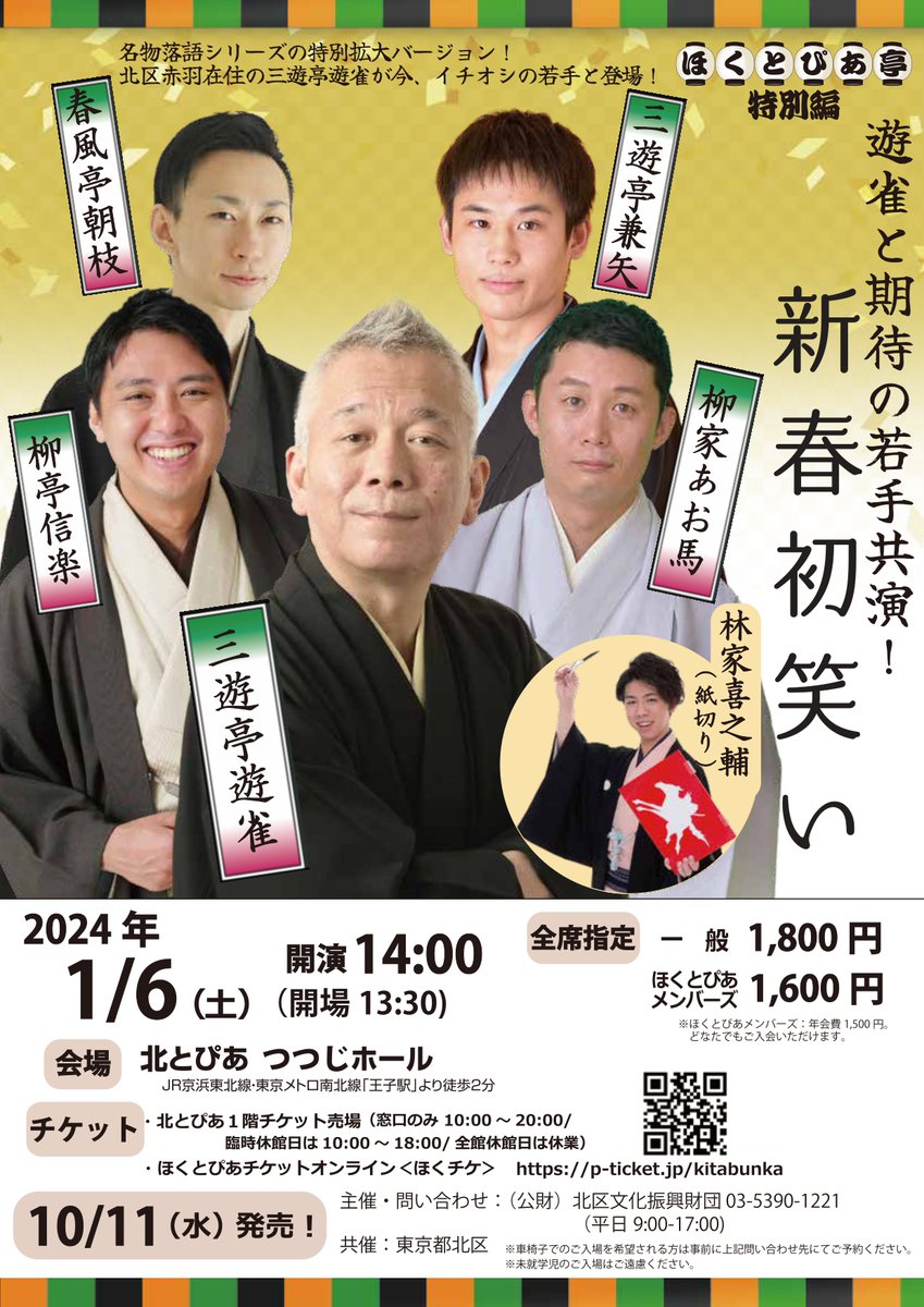 「ほくとぴあ亭特別編 遊雀と期待の若手共演!新春初笑い」