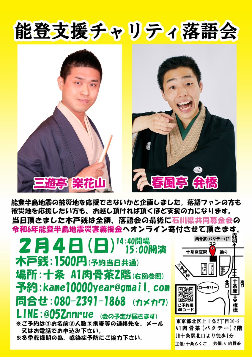 十条らくご@1/20弁橋陽乃丸会2/4チャリティ落語会
