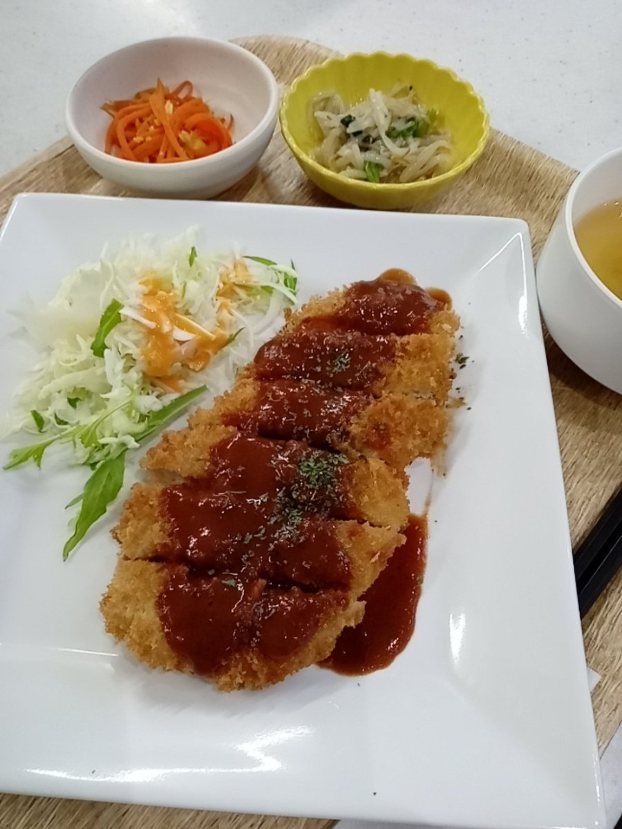 昨晩は雪と⛄珍しく雷が鳴りましたね⚡雪にも寒さにも負けず、通常通り営業しております🎵 本日の日替りランチとミニデザートは、三元豚のデミカツとミルクティゼリーです🥰ふんわり衣をつけてサクッと揚げた豚肉に、特製デミソースをかけました🐖💨アールグレイ香るゼリーもご一緒にどうぞ☕ #十条