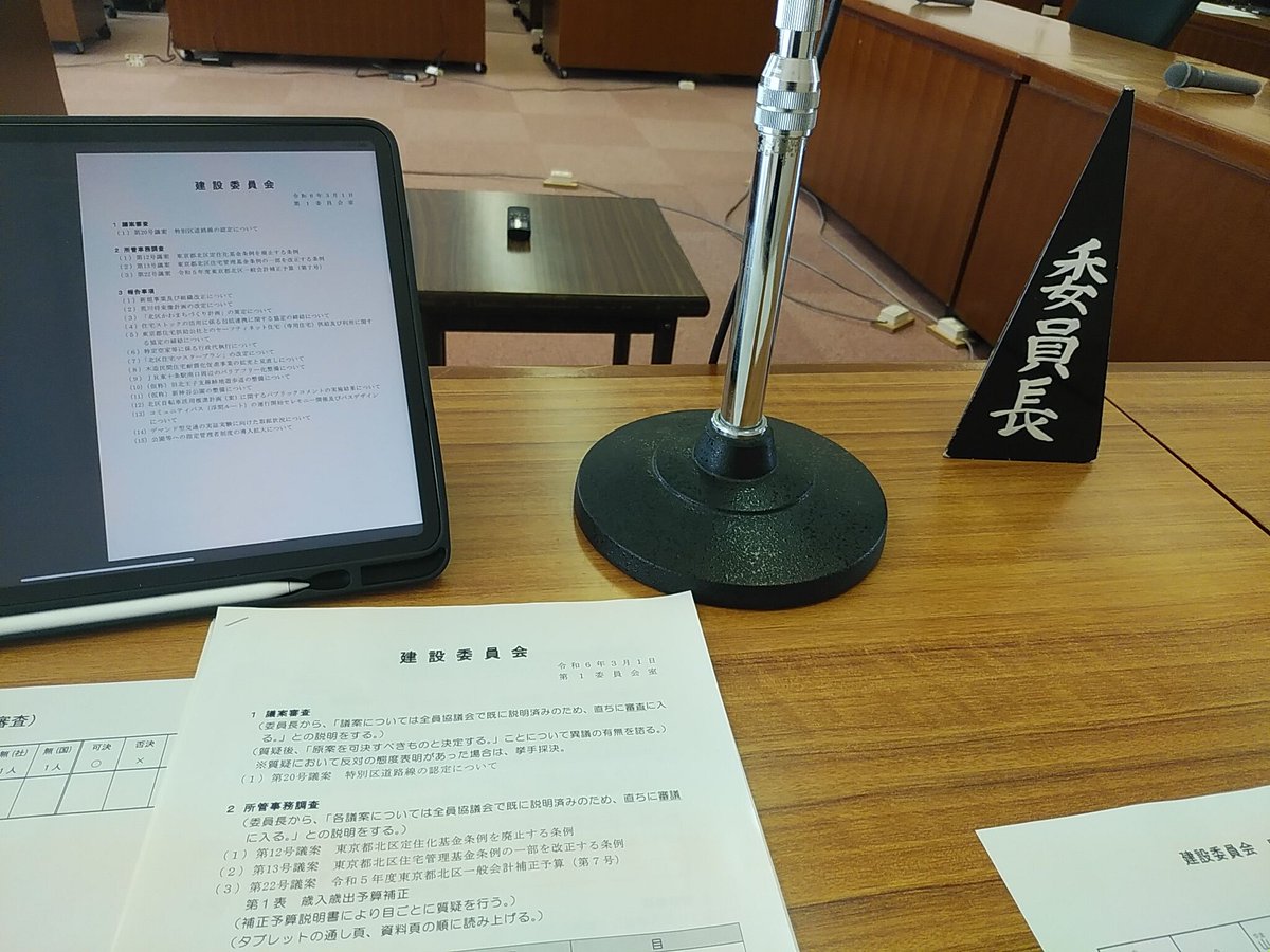 3月初日は北区議会常任委員会の、私が委員長をつとめている建設委員会と健康福祉委員会が開催されています。