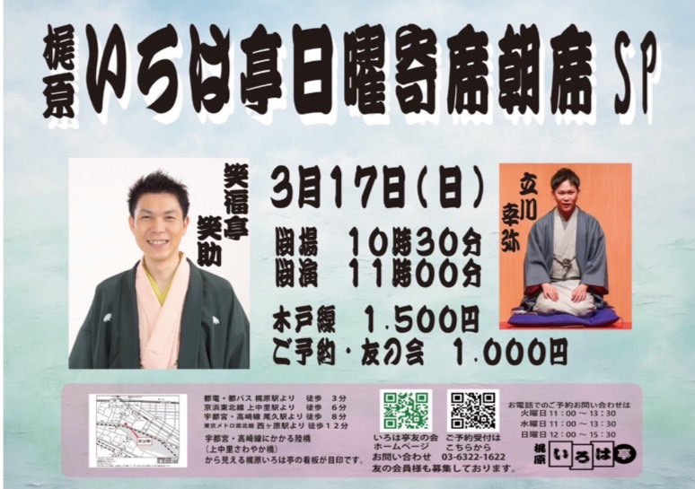 出演 桂扇生 立川らく兵 東家志乃ぶ 立川幸路
