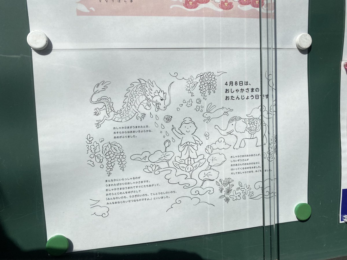 4月8日は、おしゃかさまのおたんじょう日です。(赤羽正光寺掲示板より引用)