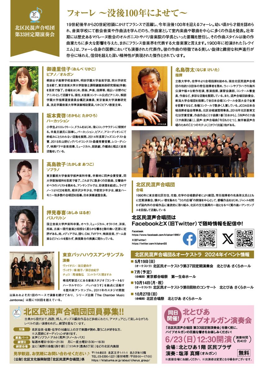 フォーレ没後100年 ~フォーレ「レクイエム」とフランスの歌めぐり~